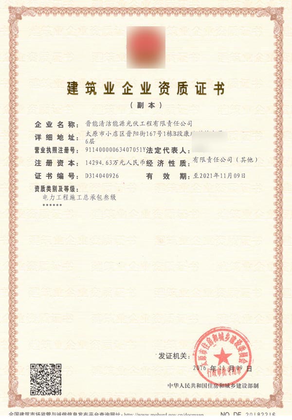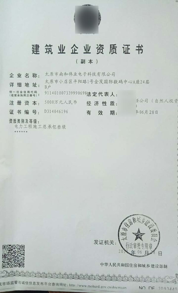 太原某公司電力施工專業(yè)總承包資質(zhì)