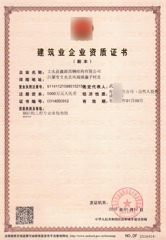 文水縣某公司鋼結(jié)構(gòu)工程專業(yè)承包資質(zhì)